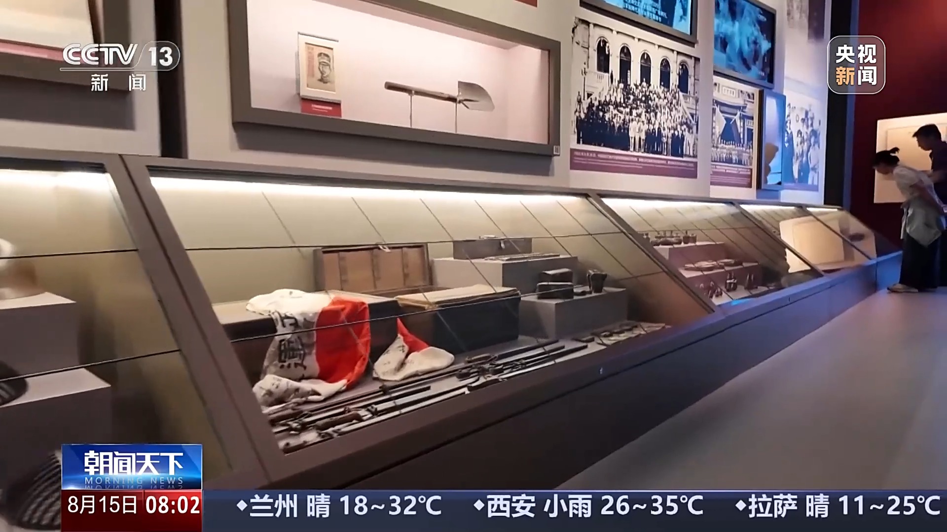 在中国人民抗日战争纪念馆地下一层第七部分展厅,陈列了众多与1945年8月15日日本宣布无条件投降相关的展品。馆内还首次展出了国家一级文物——“密苏里”号战列舰3号锅炉铭牌。1945年9月2日,日本无条件投降签字仪式在“密苏里”号主甲板举行。参观者们通过文物下方的多媒体大屏,观看当时的历史视频。此外,展厅还原了1945年9月9日上午9时,中国战区日军投降签字仪式举行时的历史场景。